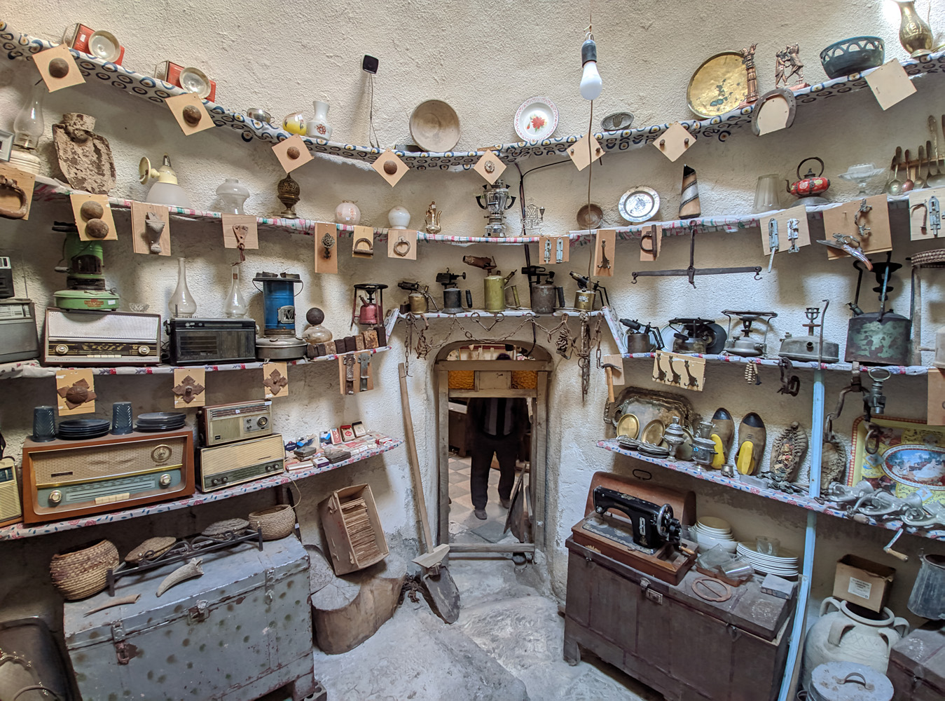 Ýygyndynyň bir bölüminde palçykdan we toýundan ýasalan gap-gaçlar, iýmit taýýarlamak we bezemek üçin ulanylan enjamlar ýerleşýär. Köne ammarlar, gapy sütünleri, aşhana enjamlary, agram daşlary we iki çanakly tereziler, el degirmenleri, grammofonlar we ilkinji ses ýazgy enjamlary, öýüň bezegi üçin esbaplar, tikin maşynlary, ütükler we dokmaçylyk enjamlary, samowarlar, ýagly çyralar, gadymy sandyklar, saz gurallary, suw çilimleri we olaryň çöpleri, hasaplaýyş enjamy, radiolar, gulplaryň we misden ýasalan täret almak üçin niýetlenen gaplaryň dürli görnüşleri - bularyň hemmesi bu ýygyndynyň bir bölegidirler. Ýygyndynyň bir burçunda köne çilim gutulary hem ýerleşdirilendir - olaryň käbirleriniň taryhy takmynan 70 ýyldyr we olaryň arasynda gadymy söwda nyşanlarynyň görnüşlerine gabat gelmek bolýar. Ýygyndynyň iň gyzykly bölümleriniň birinde bolsa köne kitaplar bar. Şolaryň arasynda 1960-njy ýyllara (şemsi-kamary senesinde 1340ý.) degişli mekdep kitaplary hem bar. Köne telefon aparatlary hem sergide ýerleşdirilipdir - olaryň käbiri 60 ýyllyk taryha eýedir!100 ýyldan gowrak geçmişi bolan ýerde, şeýle zatlary görmek, her bir myhman üçin ýatda galyjy we täsirli bir tejribe bolar.