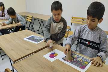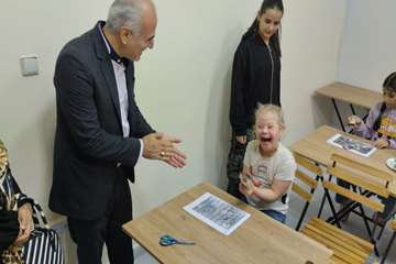 • Maýyp çagalar bilen iş otagy: Bu otagda meýletin okuwçylar we bir mugallym (psiholog) bilen bilelikde çagalar bilen hereket, reňkleri öwrenmek we el işlerini öwretmek boýunça işler alyp barýarlar.
