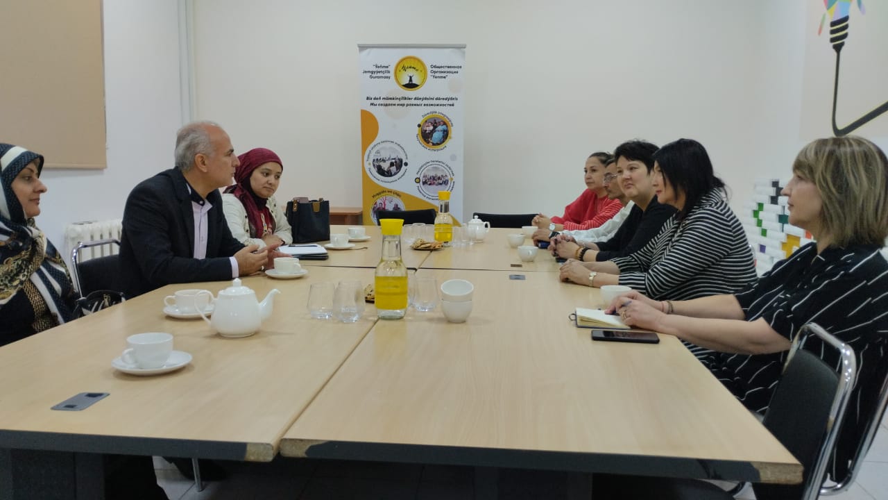 Soňra Eýran Yslam Respublikasynyň Türkmenistandaky Medeniýet meseleleri boýunça geňeşçisi Abdolreza Abbasi we Ýme jemgyýetçilik guramasynyň kärdeşleriniň gatnaşmagynda duşuşyk geçirildi. Gulýa Berdiýewa Ýme jemgyýetçilik guramasynyň meýilnamalary barada gürrüň berip, olara sapary üçin minnetdarlyk bildirenden soň, psiholog, ene-atalar we maýyp çagalar bilen işleýän hünärmen hanym Sultan Ataýewa maýyplar we meýletinçiler bilen işlemek boýunça käbir gürrüňleri berdi. Medeniýet boýunça geňeşçi aşakdakylary aýtdy: