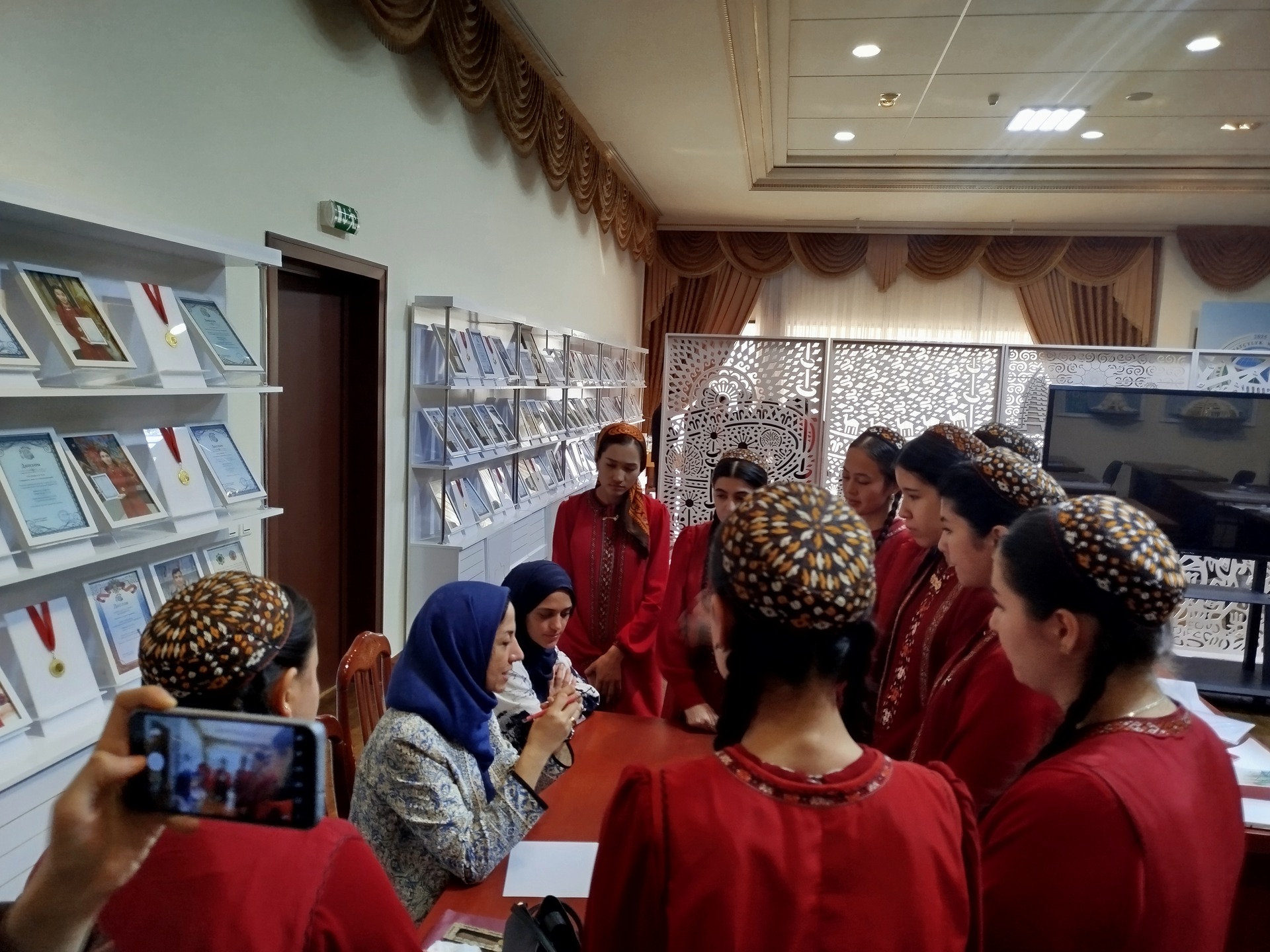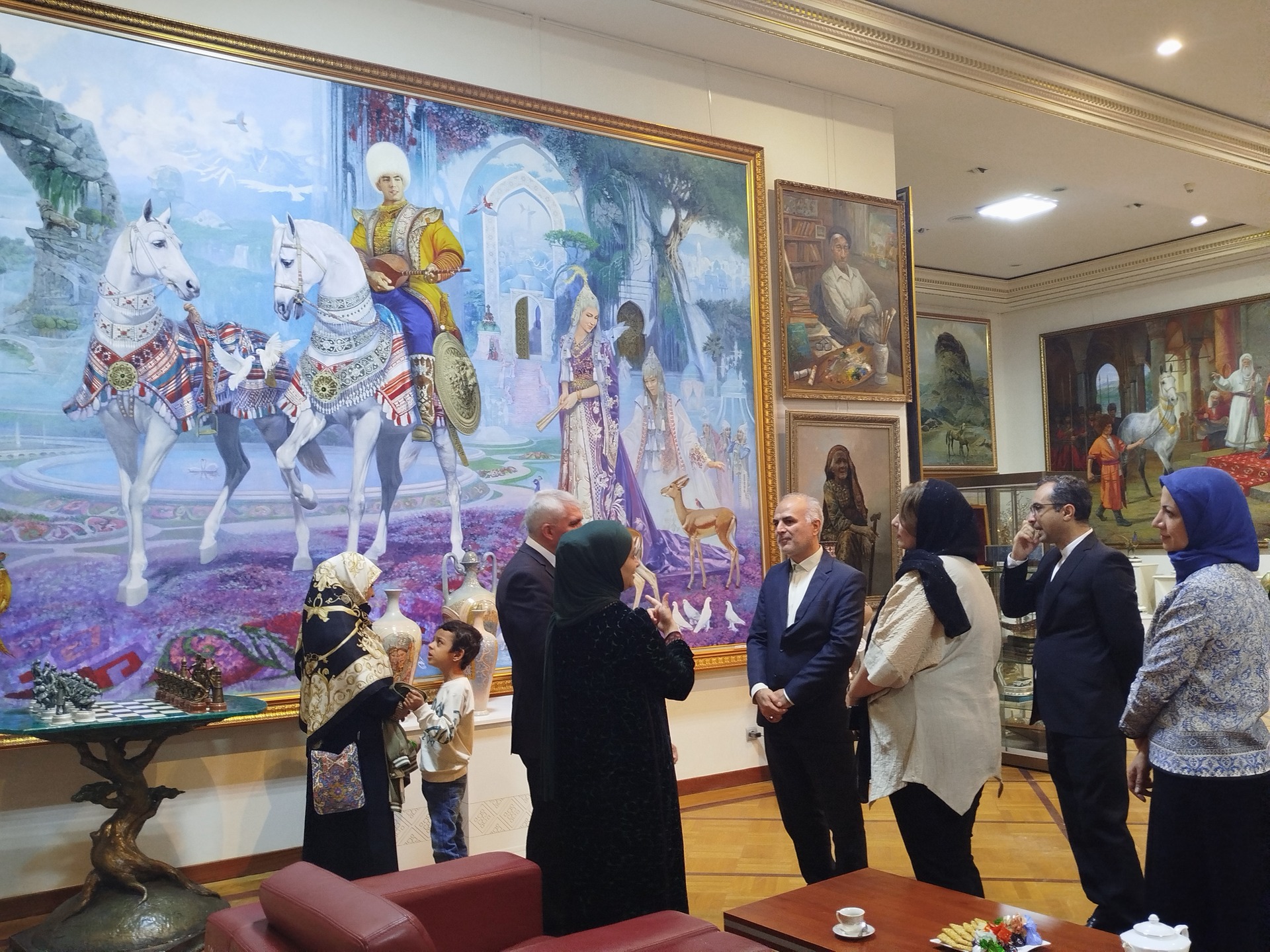 Sergiden soňra myhmanlar we Eýran Yslam Respublikasynyň Türkmenistandaky ilçihanasynyň işgärleri Türkmenistanyň Döwlet Çeperçilik akademiýasynyň okuw işleri boýunça prorektory we mugallymlary bilen bilelikde Çeperçilik akademiýanyň Altyn Fond” atly muzeýine aýlanyp, bu muzeýde talyp ýaşlar tarapyndan ýerine ýetirilen işleri syn etdiler.