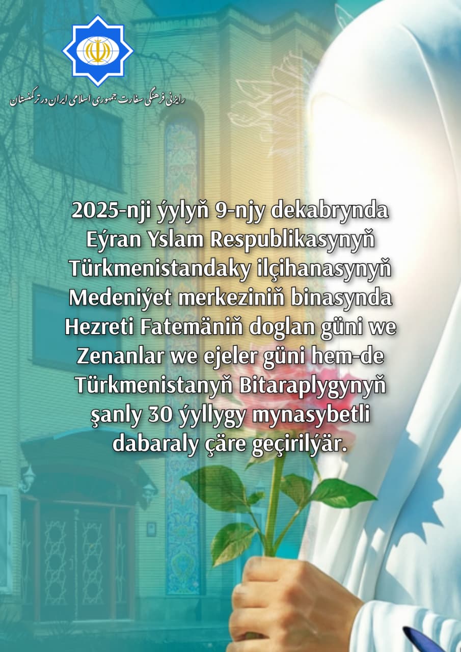 2025-nji ýylyñ 9-njy dekabrynda Eýran Yslam Respublikasynyñ Türkmenistandaky ilçihanasynyñ Medeniýet Merkeziniň binasynda Hezreti Fatemäniñ doglan güni, zenanlar we ejeler güni, şeýle-de Türkmenistanyñ Bitaraplygynyñ şanly 30 ýyllygy mynasybetli dabaraly çäre geçirilýär.