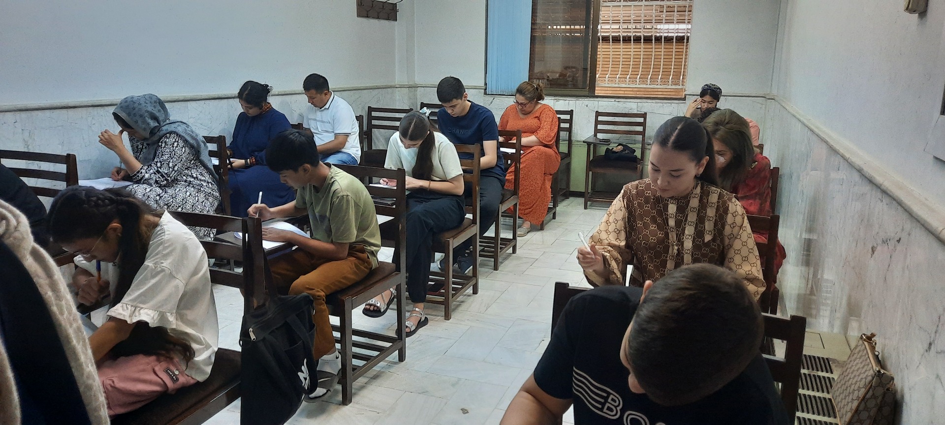 2025-nji ýylyň 15-nji sentýabrynda, ýurdumyzyň Türkmenistandaky Medeniýet merkezinde pars diliniň tomusky möwsüminiň soňky synagy geçirildi. Irden agşama çenli dowam eden bu synaglarda pars dili öwrenijiler dürli derejeli, başlangyç, orta, ýokary we ýokary derejeli bäş görnüşli synaglara gatnaşdylar we ýazmaça soraglara jogap berdiler. Synag tabşyrmak, pars dili öwrenijilerň has ýokary derejelere kabul edilmeginiň şertidir. Ähli kurslar üçin orta möhletli ýazmaça we dilden synaglar awgust aýynda geçirildi.