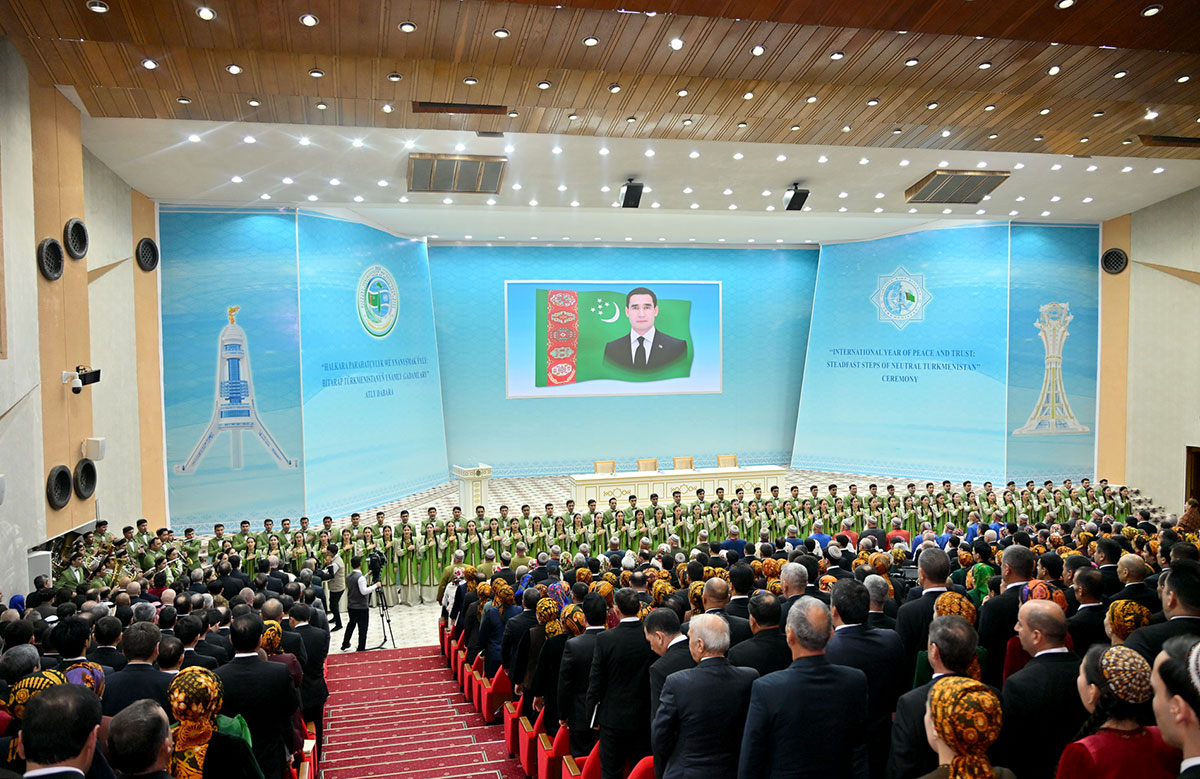 2025-nji ýylyň 25-nji dekabrynda Aşgabat şäherindäki “Mekan” köşgünde Türkmenistanyň Halk Maslahatynyň guramagynda “Halkara parahatçylyk we ynanyşmak ýyly: Bitarap Türkmenistanyň ynamly gadamlary” atly dabara geçirildi. Oňa Hökümet agzalary, Türkmenistanyň diplomatik gullugynyň, daşary döwletleriň we halkara guramalaryň Aşgabatdaky diplomatik wekilhanalarynyň ýolbaşçylarydyr wekilleri, dürli pudaklarda zähmet çekýän raýatlar, ýaşlar gatnaşdylar. Dabaranyň geçirilýän ýerinde medeniýet we sungat ussatlarynyň aýdym-sazly çykyşlary ýaýbaňlandyryldy.