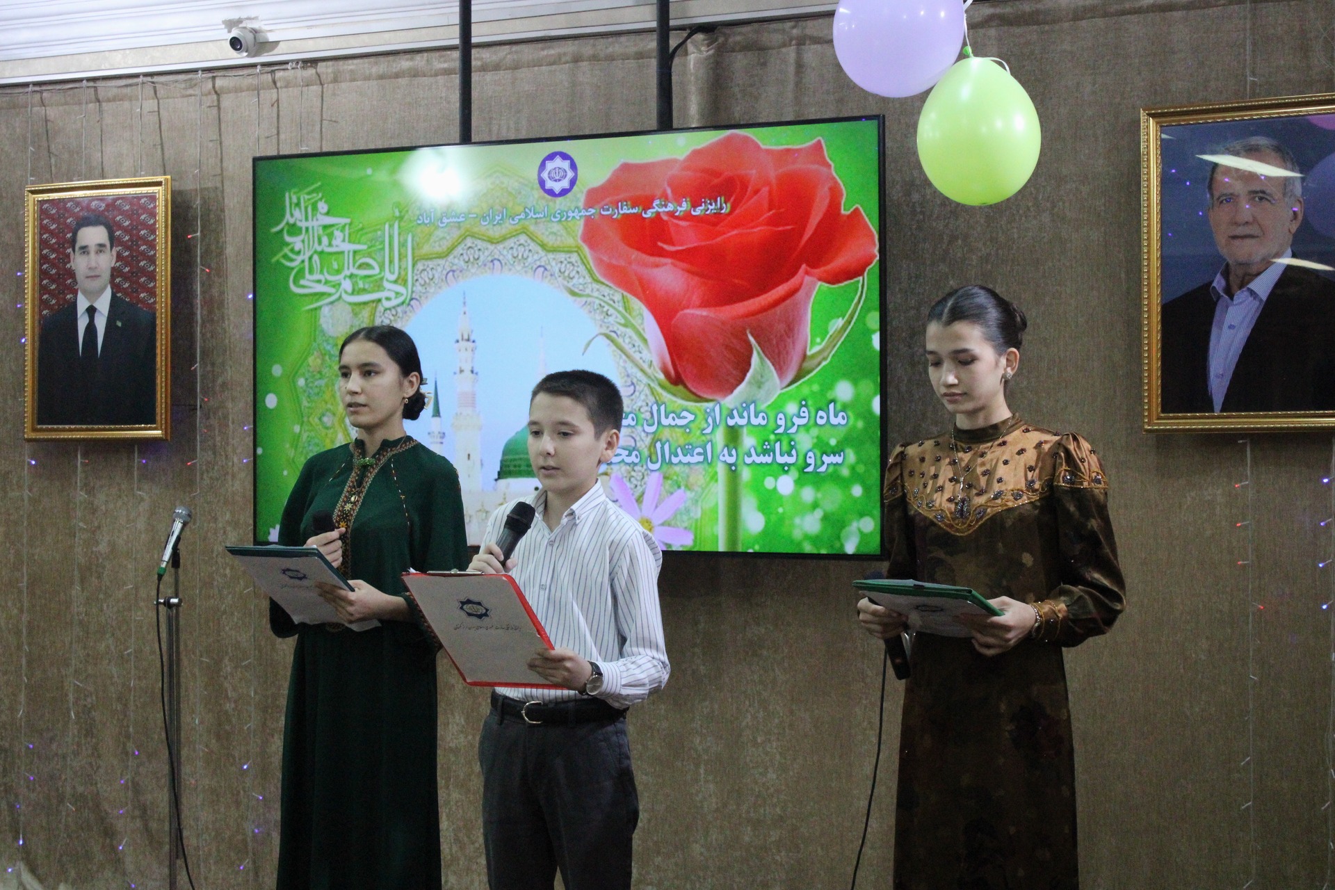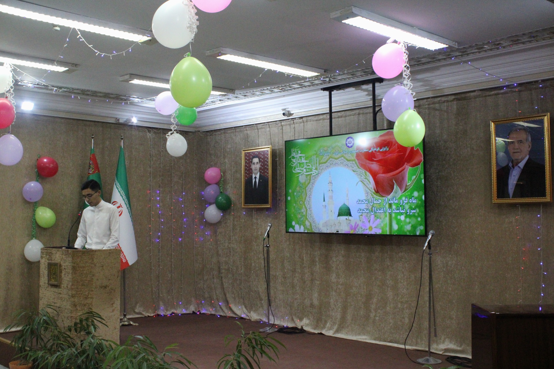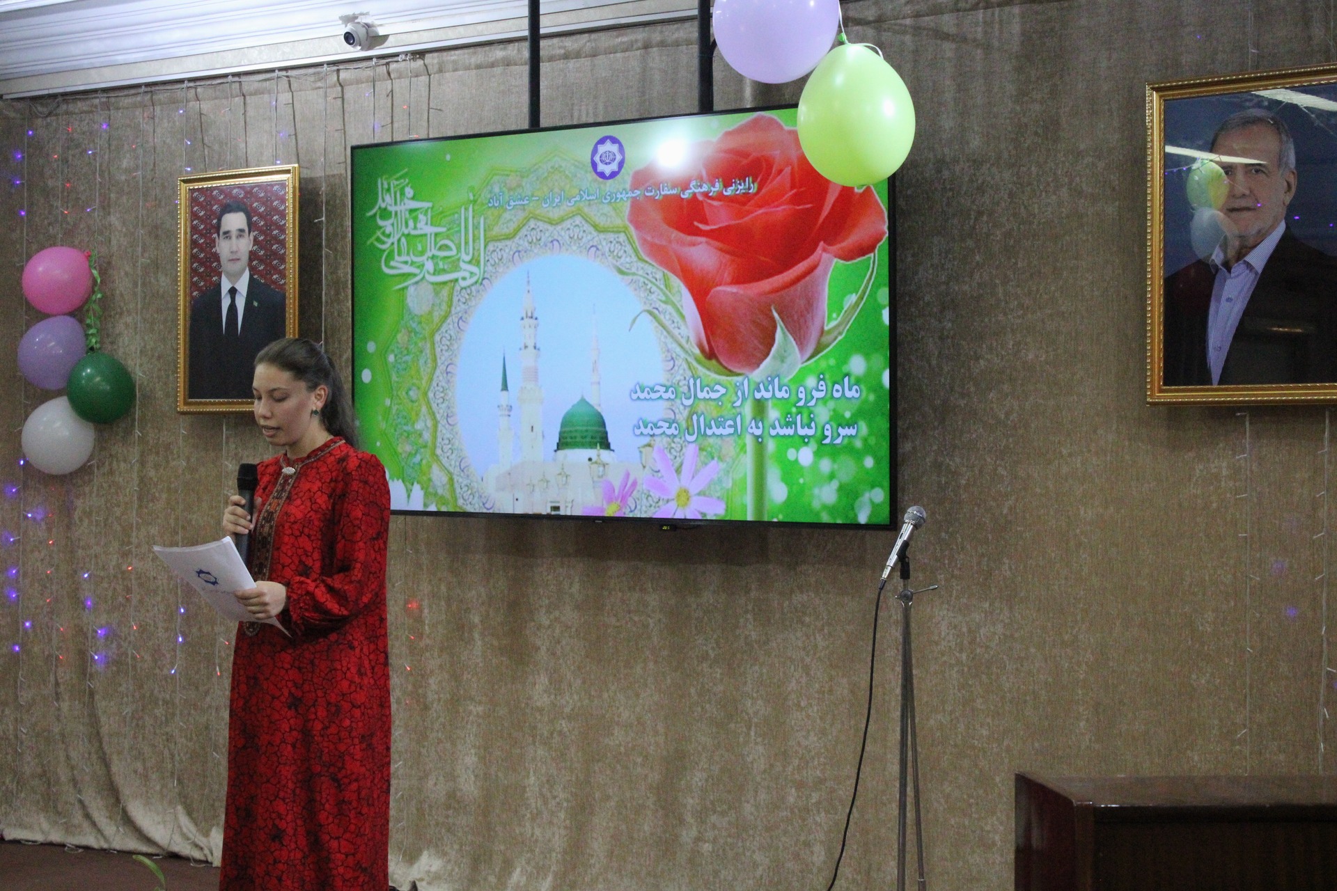 13-nji sentýabrda Eýran Yslam Respublikasynyň Türkmenistandaky ilçihanasynyň Medeniýet merkezi Muhammet (s) we Ymam Sadeg Jafar (a) doglan gününe bagyşlap, ady agzalan merkeziň mejlisler zalynda dabaraly çäre geçirdi. Bu dabaraly çärä Türkmenistanyň ýaşaýjylary, Eýranlylar, pars dili öwrenijiler we olaryň ene – atalary, Türkmenistanda işleýän eýranly täjirler we olaryň maşgalalary gatnaşdy. Baýramçylyk çäresiniň meýilnamasy aşakylardan ybarat: Pars dili öwreniji tarapyndan Gurhan Kerimden aýat okaldy
