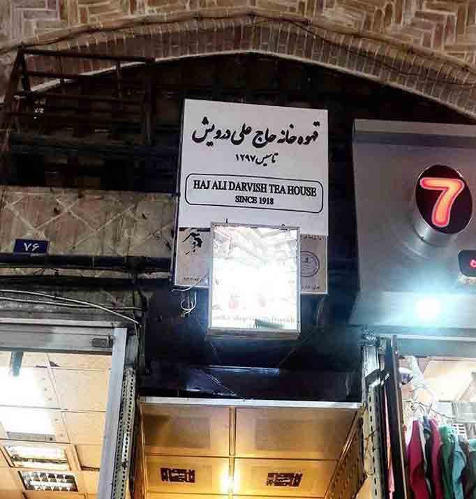 Tähran bazary şäheriň iň gyzykly taryhy we medeni ýerleriniň biridir. Onuň ähli künjegini görmek üçin wagt, üns we öňünden maglumat gerek bolýar. Bu ýerde üns berilmedik halatynda aňsatlyk bilen gözden düşürülip bilinjek ýerleriň biri hem Hajy Aly Derwiş çaýhanasydyr. Bu çaýhana diňe bir bazaryň esasy geçelgesinde ýerleşýänligi üçin däl, eýsem diňe 2 inedördül metr meýdana eýe bolany üçin dünýäniň iň kiçi çaýhanasy hökmünde tanalýar. Ol Zergärler bazarynyň ortaragynda (78-nji belgi boýunça) ýerleşýär. Meýdanynyň örän kiçi bolmagyna garamazdan, bu ýerde dürli içgiler: gara we turşy çaý, timýan we dalçynly çaýlar, türk kofesi we dürli görnüşli dermanlyk çaýlar hödürlenýär. Içgileriň bahasy adatdan daşary pesdir - käwagt mugt diýerlik. Hatda kimdir biri şol pes bahany hem töläp bilmeýän bolsa, näçe mümkin bolsa şonça töläp bilýar. Bu Hajy Aly Derwiş çaýhanasynyň ýörelgelerinden biridir. Müşderileriň käbirleri bolsa tersine, goýlan bahadanam köp pul taşlap gidýärler. Bu pullar halkyň peýdasyna - aýratyn syrkawlara ýa-da ýetim çagalary goldamak üçin ulanylýar. Şeýle hem öňki müşderileriň her biriniň çaýhanada özüne degişli bolan ýörite çaý stakanlary bar. Çaýhananyň häzirki eýesi bu kärini kakasyndan we agasyndan miras alyp dowam etdirýär. Daşary ýurtly myhmanlar gelende olara içgi bilen bile kiçijik sowgat we parsça şygyr bölegi berilýär. Häzirki gün bu kiçi çaýhana dünýäniň bäş yklymyndan myhman kabul edýär, hatda käbir syýahatçylyk firmalary bu ýere ýörite gezelençleri guraýarlar. Elbetde, daşary ýurtly syýahatçylar gelmese-de, çaýhananyň öňünde elmydama üýşmeleň bolýar, sebäbi bu ýerde çaýyň, kofäniň we dermanlyk çaýlaryň tagamy aýratyn meşhurdyr.